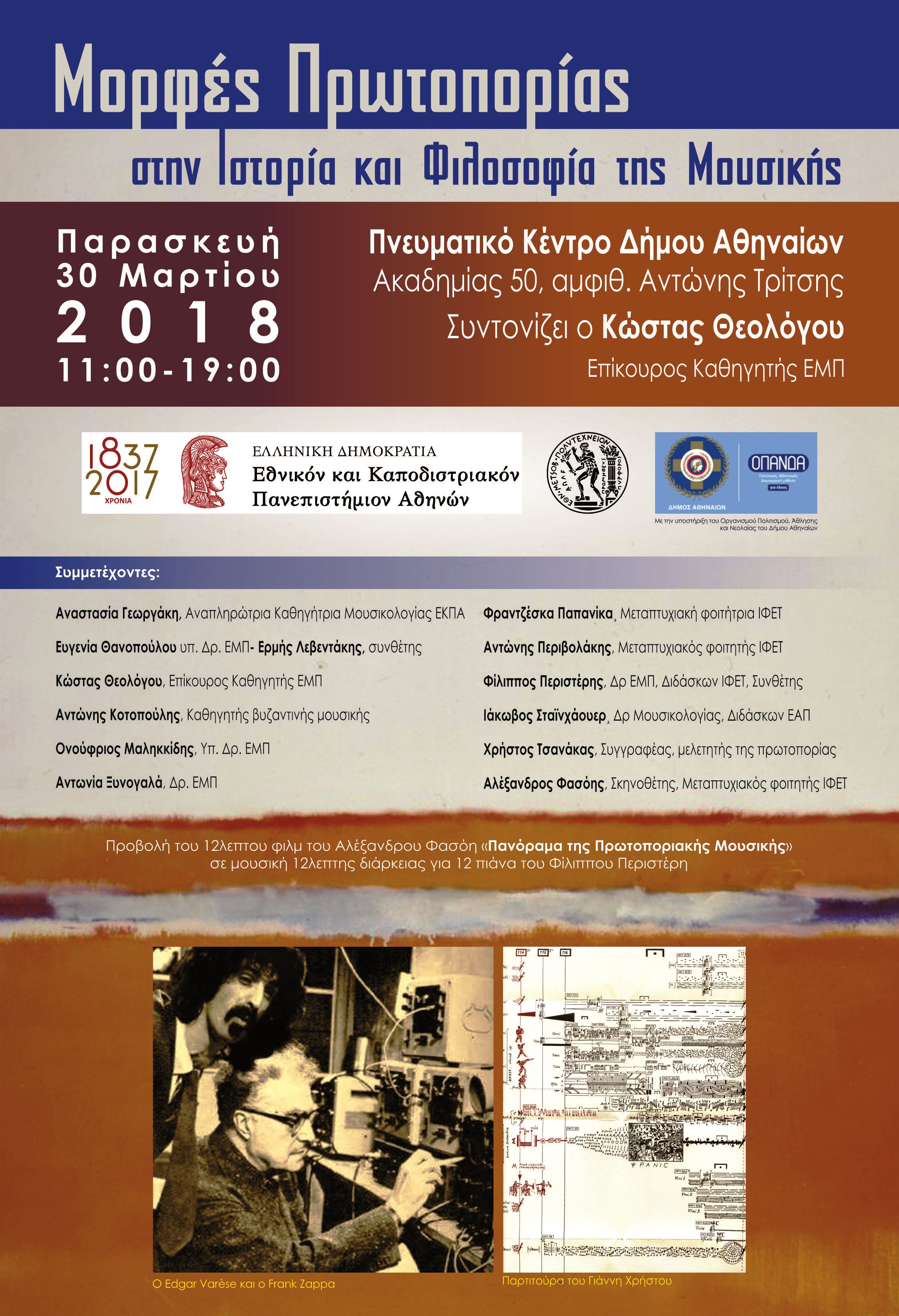 Ημερίδα "Μορφές Πρωτοπορίας στην Ιστορία και Φιλοσοφία της Μουσικής"