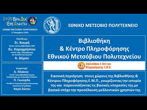 Εικονική περιήγηση στους χώρους της Βιβλιοθήκης & Κέντρου Πληροφόρησης Ε.Μ.Π., γνωρίζοντας την ιστορία της και παρουσιάζοντας τις βασικές υπηρεσίες της με βασικό στόχο την προσέλκυση μελλοντικών χρηστών της
